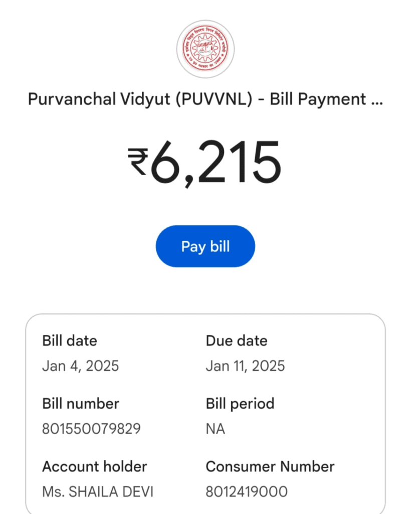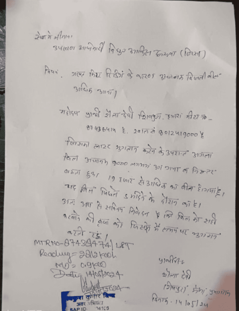 सिरसा : ताजा मामला प्रयागराज के लेहडी ग्राम सभा के शिवपुरा का मामला है, जहां 13 दिसंबर 2024 को बिजली का बिल ₹1448/- था और 4 जनवरी 2025 को बिल ₹6215/- दिखा दिया गया।