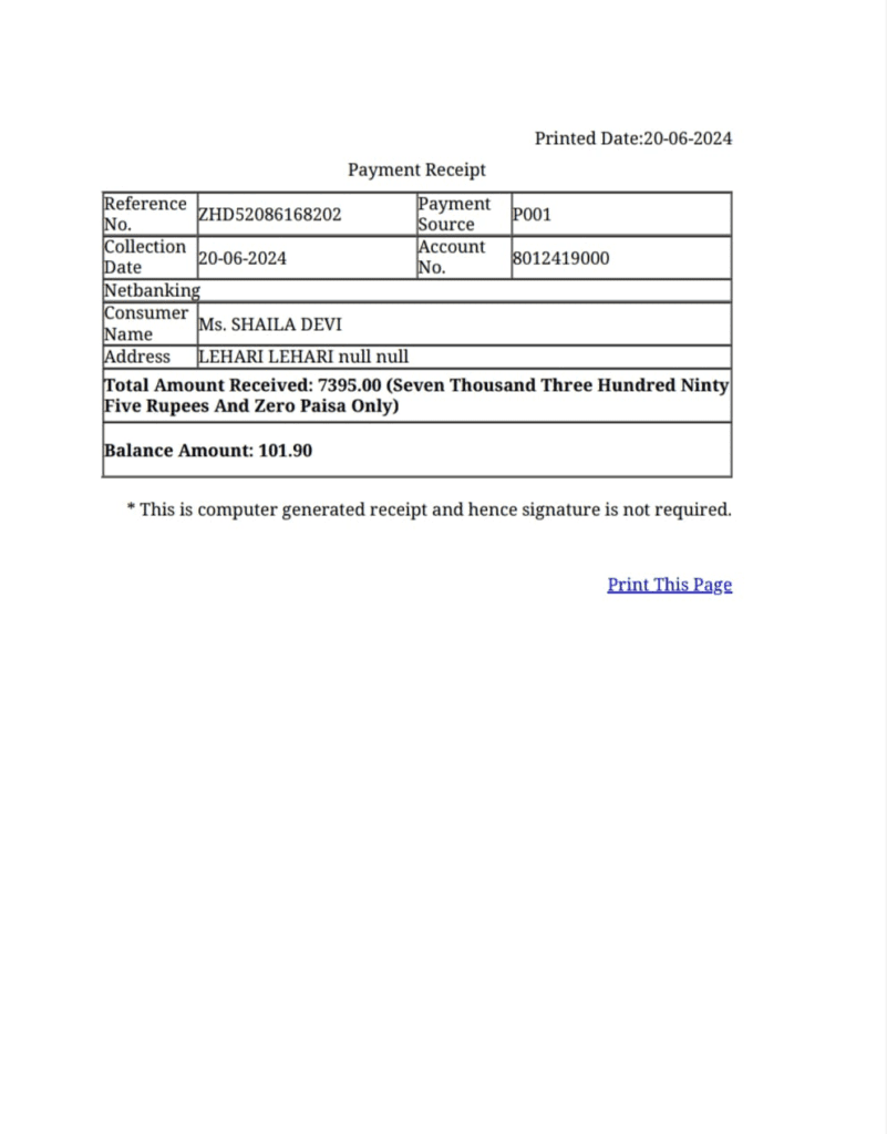 इससे पहले भी अधिक बिजली का बिल आने से बुजुर्ग महिला उपभोक्ता शैला देवी परेशान हुई थी तब जाकर दिनांक 20/06/2024 को ₹ 7395/- लेकर के बिजली का बिल सेटलमेंट किया गया,